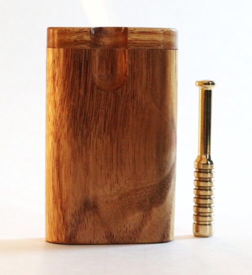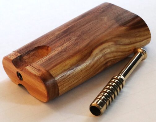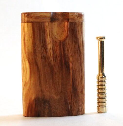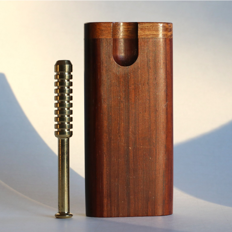 Here is a beautiful Mahogany Swivel lid Dugout. Paired with a 2″ ribbed Brass pipe, this is a perfect combo to enjoy a smoke on the go.