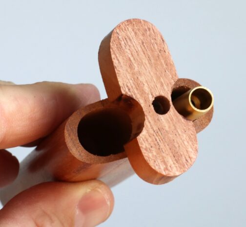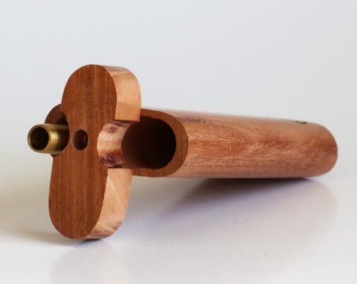 The pipe is solid brass with a mango wood cover. This is a heat cover and will keep your fingers cool. We will include a small brass poker so that you can clean the pipe easily.