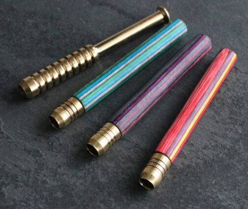 | One Hitter Pipe | Ribbed Brass, Aqua-Green, Purple, Rainbow |