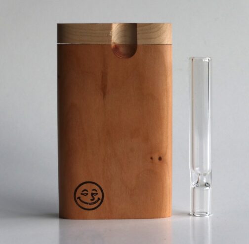 This new design by our friends at Better Life LLC is a gem. For years customers have requested bigger storage compartments on our dugouts and larger chillum size pipes. Here it is. The Cherry Big Hitter boasts a much larger storage compartment and a designer glass chillum. This allows for bigger tokes, more friends and more fun. These are American made walnut dugouts crafted by Better Life from Indiana.