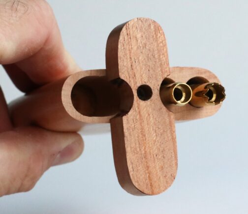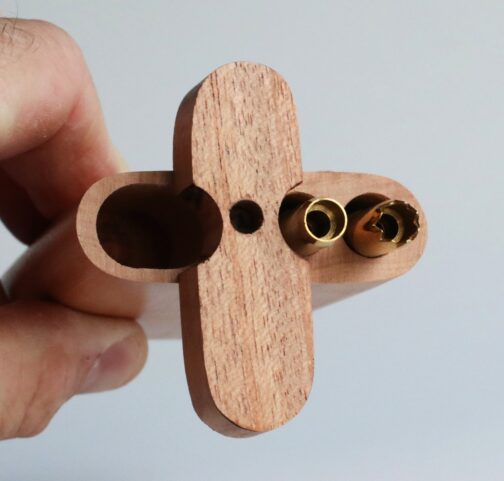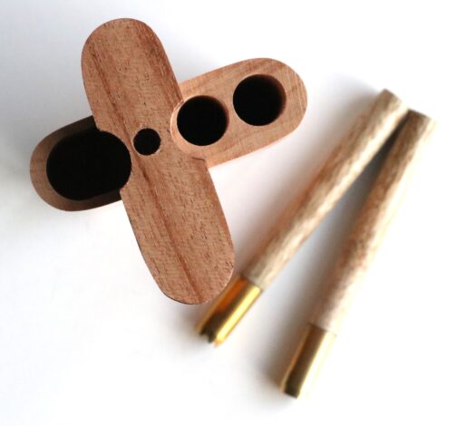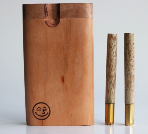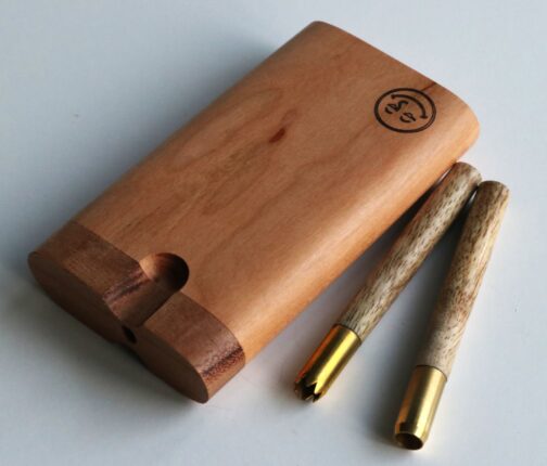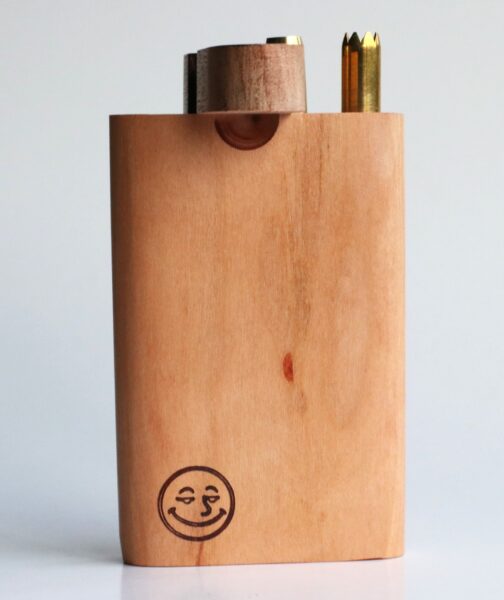 This new design by our friends at Better Life LLC is a gem. For years customers have requested bigger storage compartments on our dugouts and two pipe holders. Here it is. The Cherry Double Hitter boasts a much larger storage compartment and two 3″ pipe slots. Pass one to a friend! These are American made walnut dugouts crafted by Better Life from Indiana.