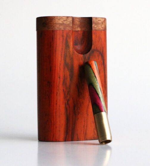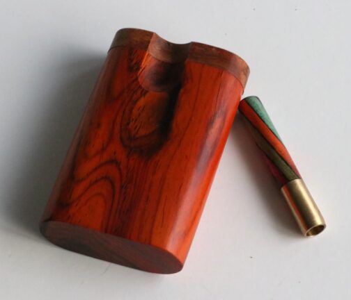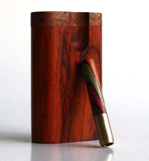 Beautifully handcrafted dugout made by the masters. This is the exact dugout you will receive. Check out the rich Cocobolo grain on both faces of this dugout, a true collector’s item and a perfect example of functional art. Enjoy a smoke on the go with this handy stash box and one hitter pipe.