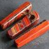 The pipe is made from exotic hardwoods like Padauk, Bocote and Morado woods. Measuring 3.75″ in length, it has a 15 mm bowl diameter & 10 mm bowl depth and a clean natural polished wood pipe stem. They come with a poker and a pack of 5 brass screens. Each pipe has a base of either Padauk, Bocote, Bolivian Rosewood or Purple Heart. The top is a blend of all of these woods, creating unique patterns. Please choose the wood base from the drop down menu.