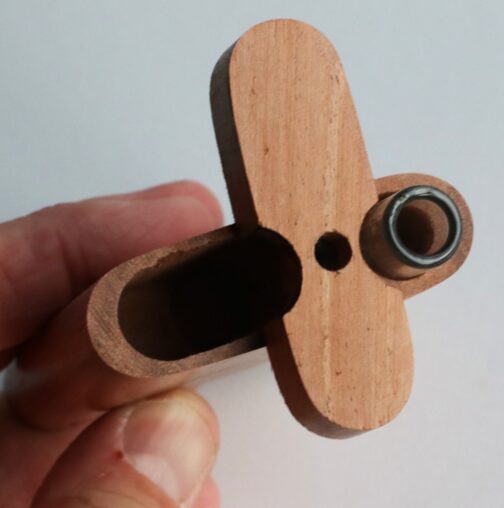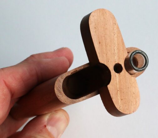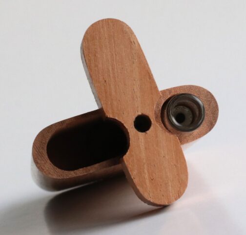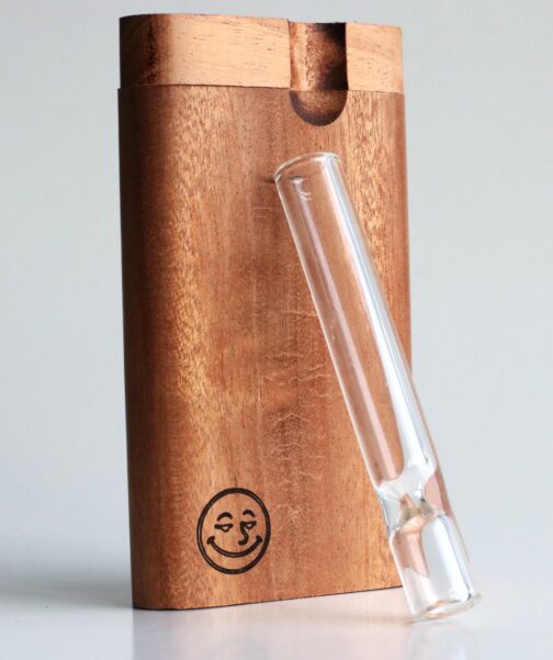 This new design by our friends at Better Life LLC is a gem. For years customers have requested bigger storage compartments on our dugouts and larger chillum size pipes. Here it is. The Mahogany Big Hitter boasts a much larger storage compartment and a designer glass chillum. This allows for bigger tokes, more friends and more fun. These are American made walnut dugouts crafted by Better Life from Indiana.