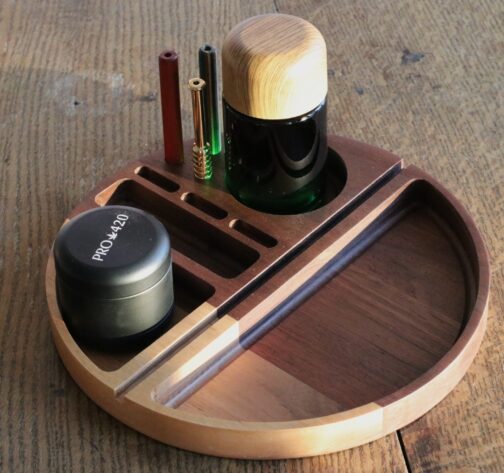 If you are looking for the perfect gift for your smoker friend or you simply want to elevate your smoking experience, here is your bundle. We are offering these top selling products all together as one package deal, and it is a great deal! The walnut rolling tray is a great tool for sorting dried herbs and organizing your smoking kit. It has a grinder holder as well as 3 slots for your pipes, a seam for your papers or whatever else you may want to store safely on it’s surface.