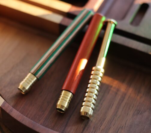 The one hitters pipes are 3 of our best selling one hitter pipes. They fit in dugouts as well, so if you want to check out our line of dugouts you can include one with the bundle. The 3″ ribbed brass bat is an old school classic, the exotic wood pipe and the Rainbow wood pipe are both wood stems with a screw on brass bowl.