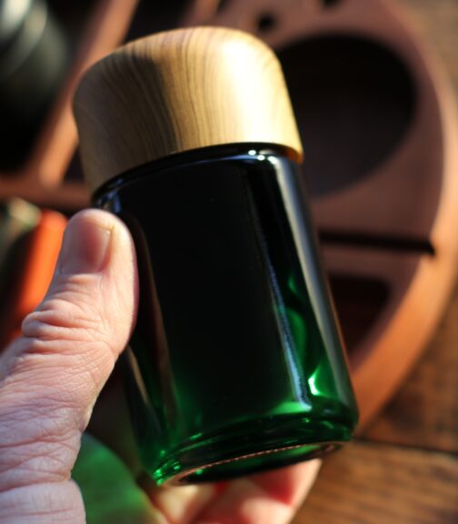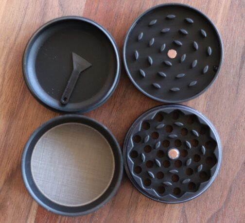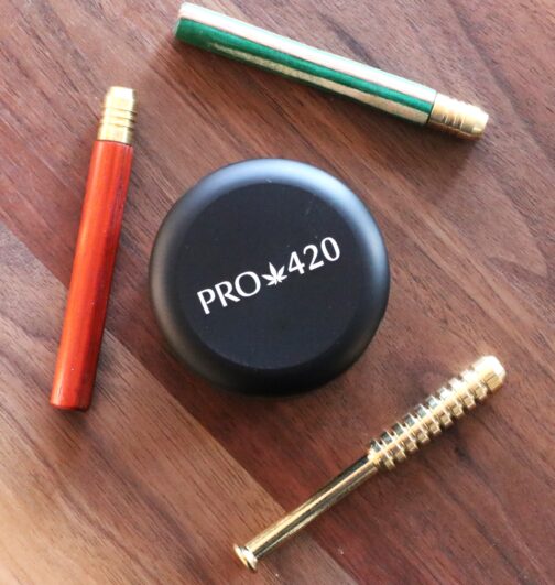 The herb grinder is a 4 piece PRO 420 labeled metal grinder. The magnetic lid makes it easy to close, while the basin can store your finely ground herbs pre-smoke. Store your dried herbs in style with the 4″ Green tinted UV protected stash jar. This jar is a heavy thick quality glass that is tinted to protect your bud from rays. The cap screws on and acts like a pill bottle. You have to push down to release and twist to open. The cap has a built in sealer which helps keep the pungent smell of quality bud contained in the jar.