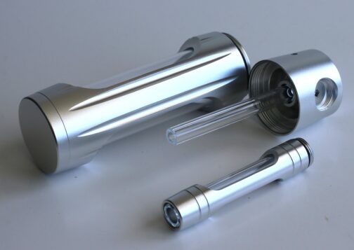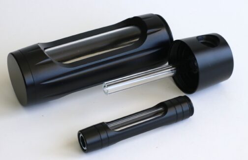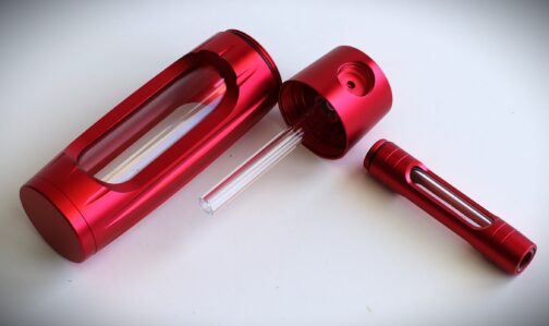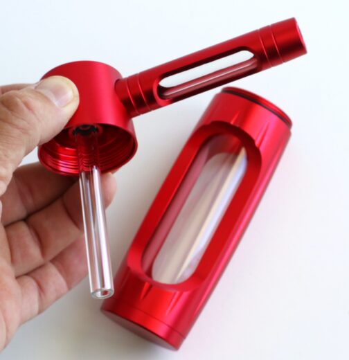 The stem unscrews for easy cleaning, the top unscrews and you can slide the glass slide and bowl out to clean thoroughly. There is even a small secret compartment on the base that unscrews to reveal a small space for extra buds. Glass is the cleanest material to smoke from and this unit will let you experience the highs and none of the lows of dropping and breaking your glass piece. Encased in a strong aluminum alloy shell, the glass stem, slide and bowl will hopefully last a lot longer than your last glass smoking pipe.