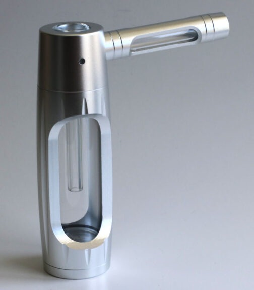 The 6″ PRO 420 Glass Bubbler is a state of the art device for smoking herb. Combining the clean smooth hits of glass with a solid aluminum frame work to protect and serve, this device has everything you need to smoke your herbs in style. Unscrew the top, fill with water, pack a bowl and enjoy the smooth hitting experience unlike any other. It feels great in the hands, is easy to use with a built in carburetor on the side and hits like a gem.