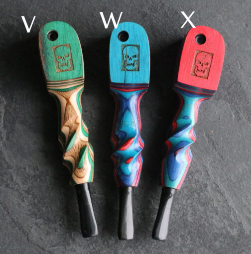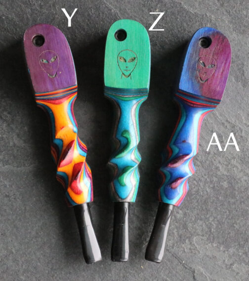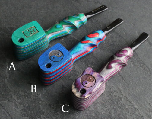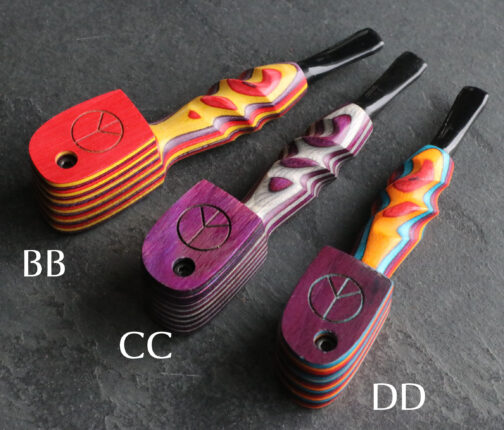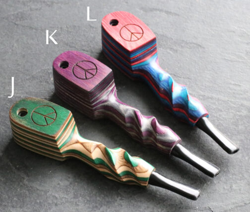 Handcrafted in The Mill in upstate NY, these classic swivel lid pipes have been stocked in smoke shops since the early 70’s. They are built to last. Pick your favorite design, from skulls, peace signs, yin yang and mushrooms, there is a limited supply of these pipes and they are collector’s items! These produce a smooth hit of your favorite tobacco or dried herbs.