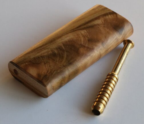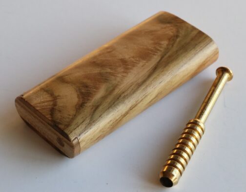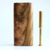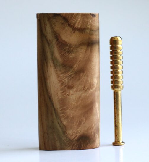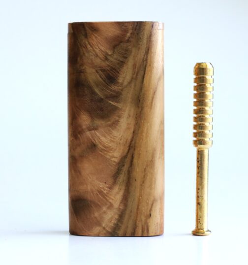 This is a handcrafted Teak Dugout made by the pros at The Mill in upstate NY. 4″ in height, this convenient sleek box will hold herb and a one hitter pipe. Open the slider lid to reveal both compartments. These are tried and tested for decades as the go to travel companion for smokers. Included with the teak dugout is a 3″ brass pipe.
