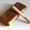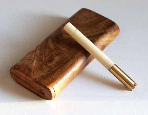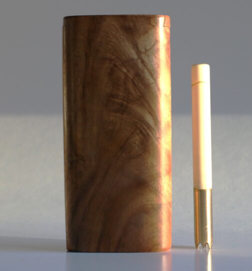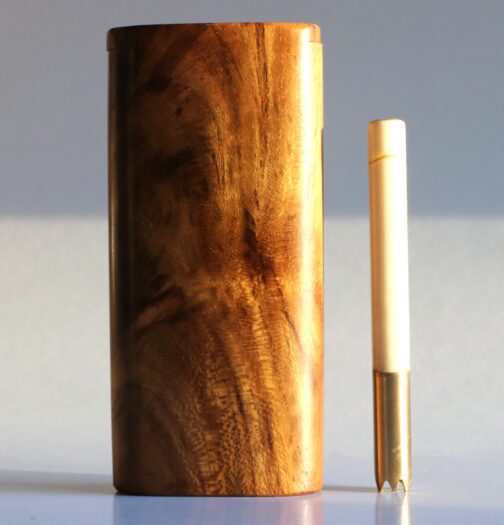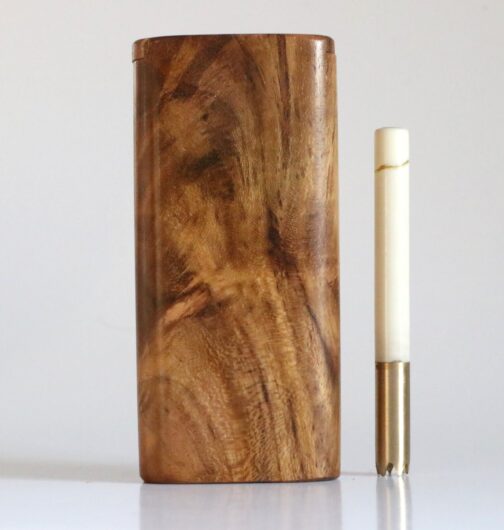 This is a handcrafted Teak Dugout made by the pros at The Mill in upstate NY. 4″ in height, this convenient sleek box will hold herb and a one hitter pipe. Open the slider lid to reveal both compartments. These are tried and tested for decades as the go to travel companion for smokers. Included with the teak dugout is a 3″ brass pipe.