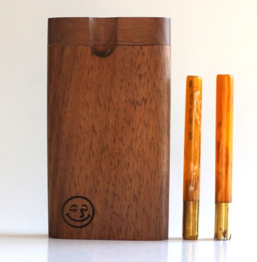 This new design by our friends at Better Life LLC is a gem. For years customers have requested bigger storage compartments on our dugouts and two pipe holders. Here it is. The Walnut Double Hitter boasts a much larger storage compartment and two 3″ pipe slots. Pass one to a friend! These are American made walnut dugouts crafted by Better Life from Indiana.